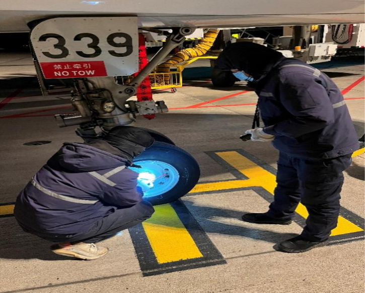 冬季维护中,为防止水系统管路结冰爆裂,机务人员需仔细排空厨房、厕所等处存水,并用引气吹干余水。工具清点贯穿全程,小到保险丝、螺丝刀头都必须登记回收,杜绝遗漏风险。寒风刺骨的机坪上,他们凭借手电与 “火眼金睛”排查隐患、处理故障,认真记录、签字放行。